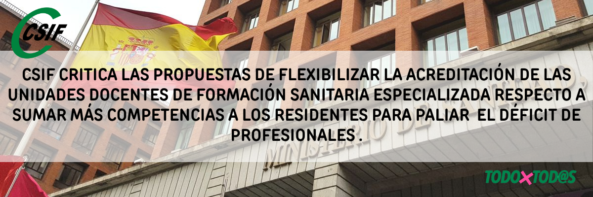 CSIF critica las propuestas de flexibilizar la acreditación de las unidades docentes de formación sanitaria especializada respecto a sumar más competencias a los residentes para paliar el déficit de profesionales .