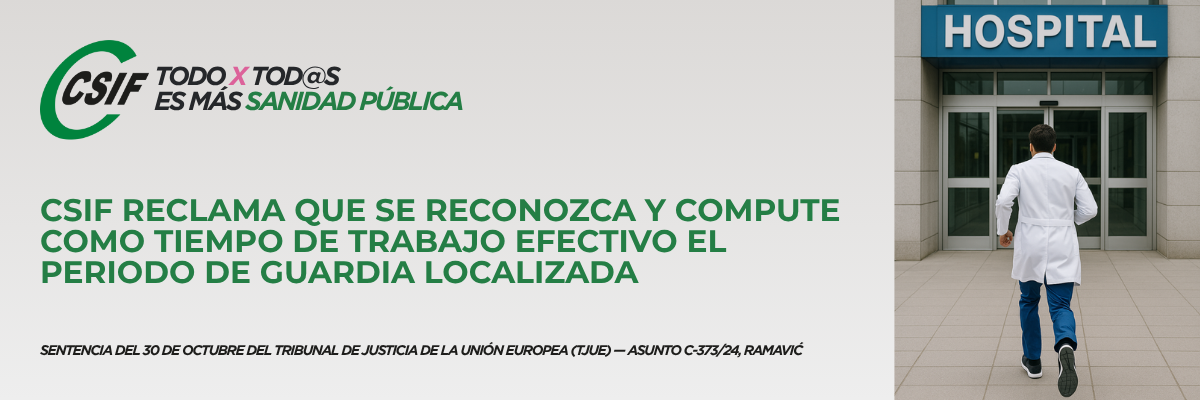 Desde CSIF Sanidad defendemos que esta doctrina debe aplicarse sin distinción a todas las categorías del SNS que realizan guardias o servicios de localización, ya que su disponibilidad permanente forma parte esencial de la prestación asistencial y debe reconocerse como tal.