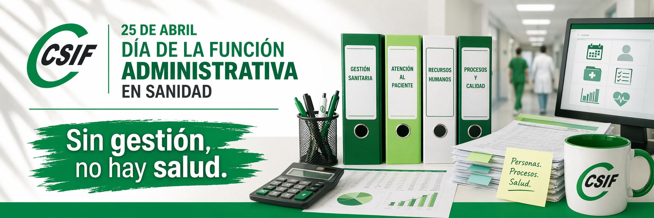 CSIF no celebra. Reivindica. Hoy, como cada 25 de abril, recordamos que el personal de la función administrativa no es un recurso auxiliar del sistema sanitario. Es parte de su estructura. Y esa estructura merece el mismo reconocimiento, la misma estabilidad y las mismas condiciones que cualquier otro colectivo del SNS.