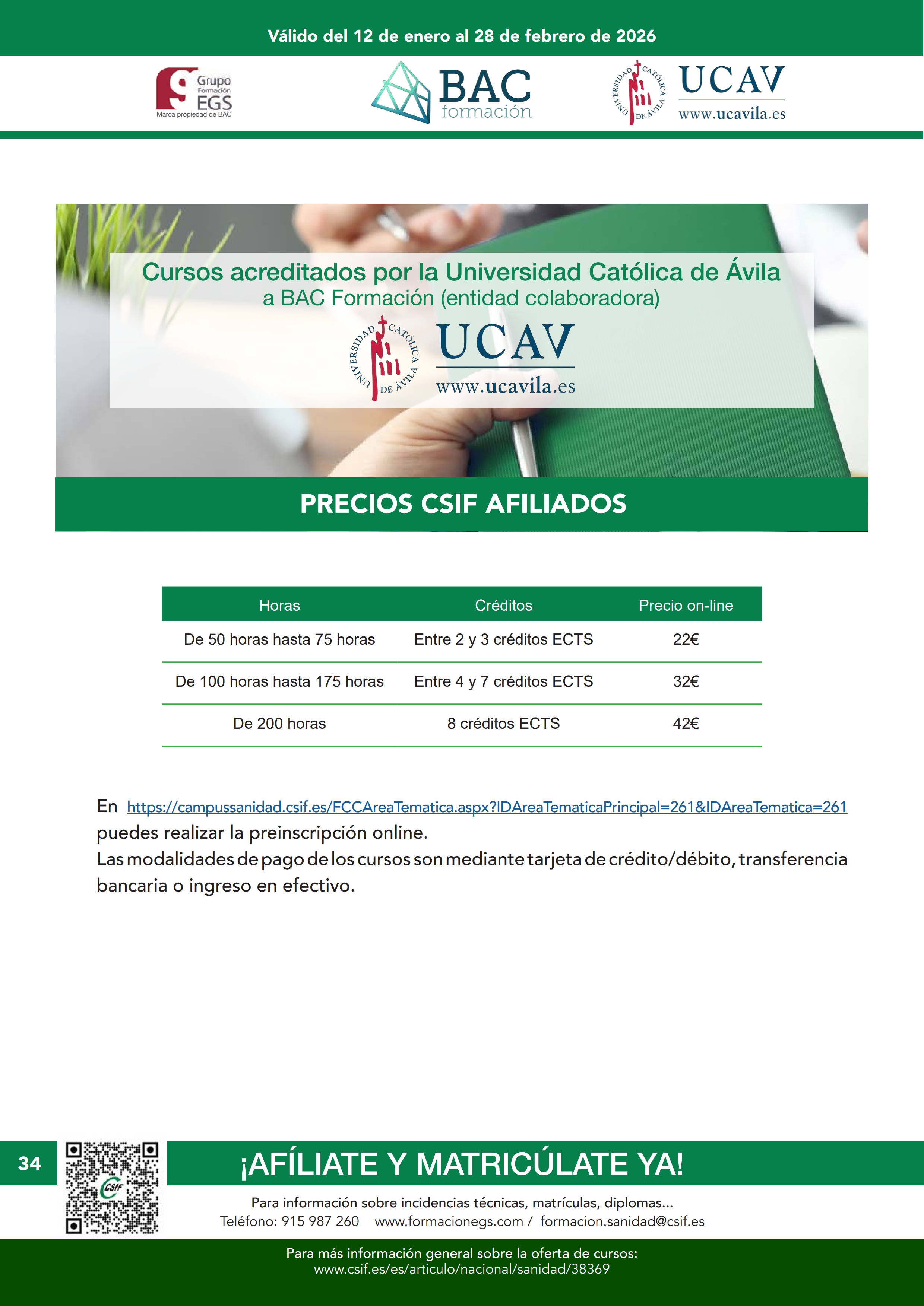 - Contacto para gestión de cursos: formacion.sanidad@csif.es, teléfono 915-987-260.