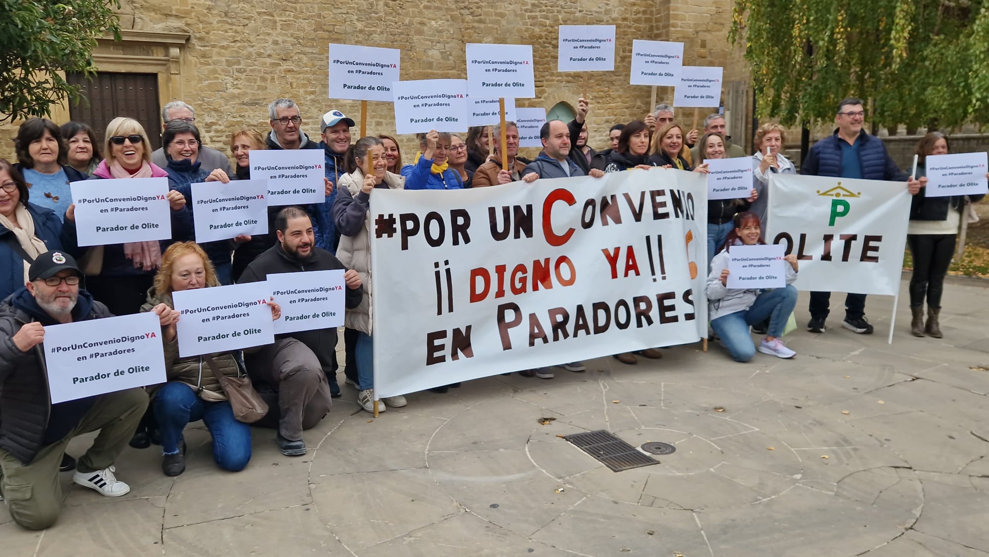 Este 7 de noviembre, la plantilla del Parador de Olite ha vuelto a concentrarse frente a la puerta de su centro de trabajo.