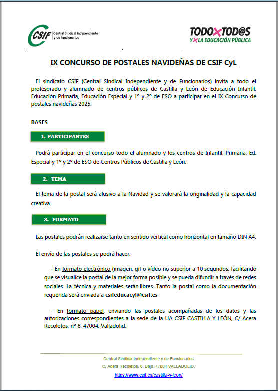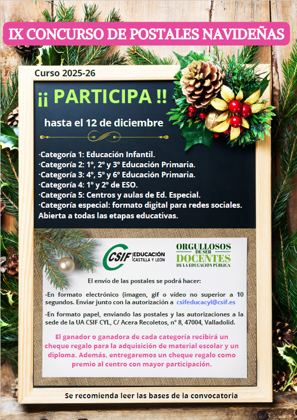 CSIF convoca el IX Concurso de Postales Navideñas 2025 para el alumnado de Castilla y León.