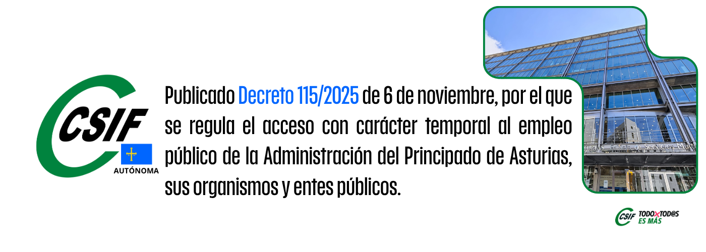 Publicado Decreto 115/2025 de 6 de noviembre, por el que se regula el acceso con carácter temporal al empleo público de la Administración del Principado de Asturias, sus organismos y entes públicos.
