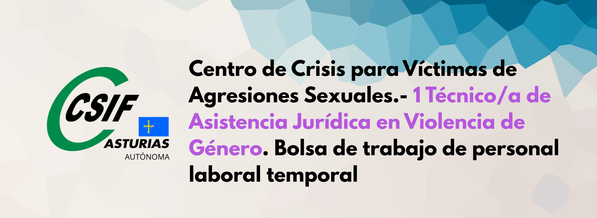 Centro de Crisis para Víctimas de Agresiones Sexuales.- 1 Técnico/a de Asistencia Jurídica en Violencia de Género. Bolsa de trabajo de personal laboral temporal