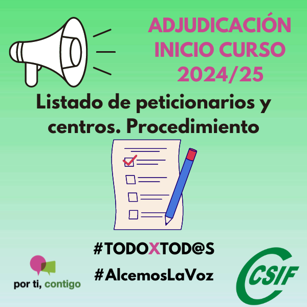 Adjudicación inicio curso 2024-25. Listado de peticionarios y centros. Procedimiento de petición