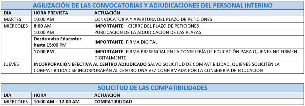 IMPORTANTE: nuevos plazos para las peticiones de plaza y las firmas de nombramientos