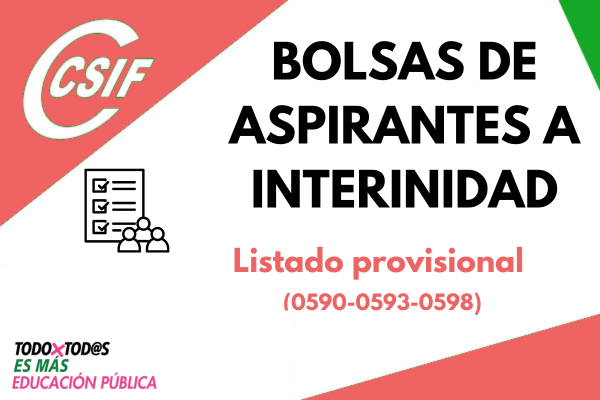 Bolsas de aspirantes a interinidad. Listado provisional (0590-0593-0598)