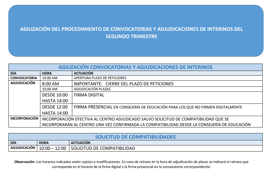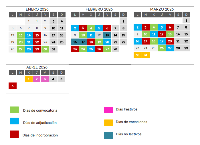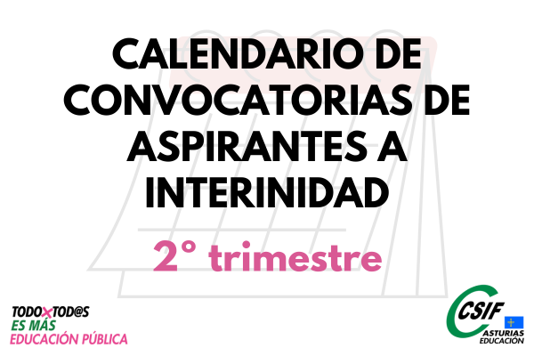 Calendario de convocatoria de aspirantes a interinidad. Segundo trimestre
