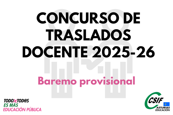 Concurso de traslados docente 2025-2026. Baremo provisional