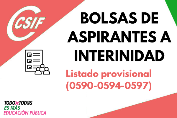 Bolsas de aspirantes a interinidad. Listado provisional (0590-0594-0597)