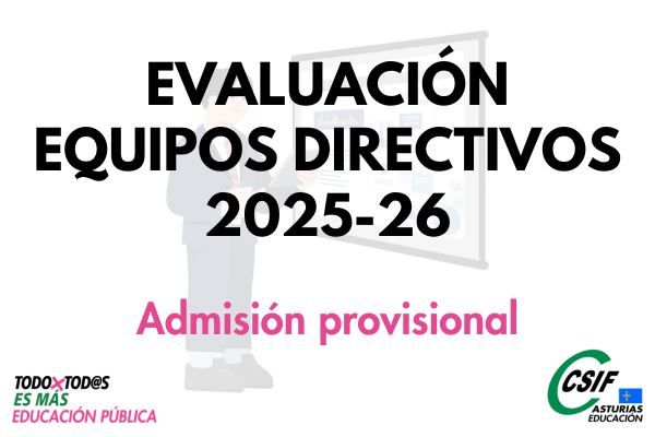 Evaluación equipos directivos 2025-26. Admisión provisional