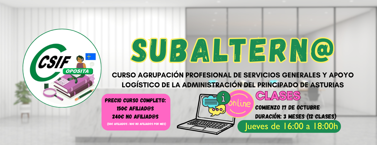 Subaltern@ .- Curso Agrupación Profesional de Servicios Generales y Apoyo Logístico (Asturias)