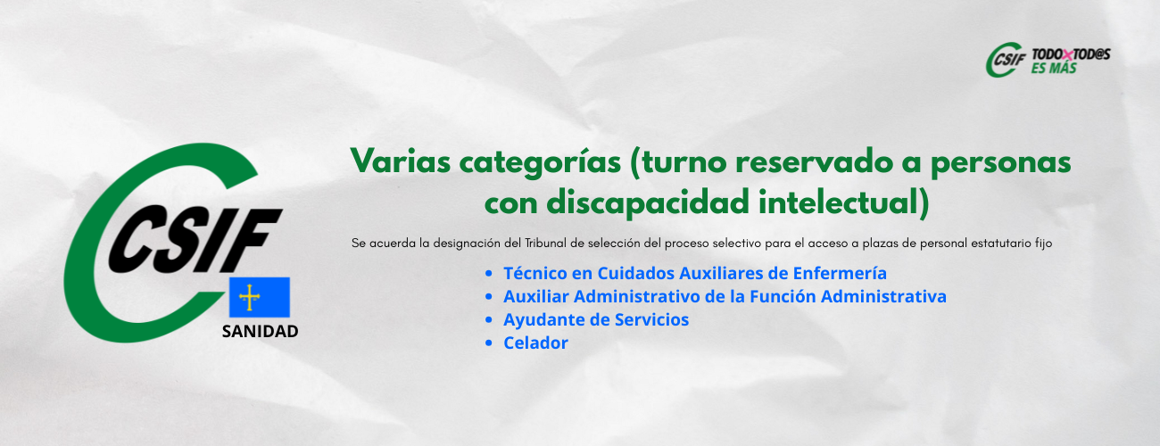 Resolución de 28 de octubre de 2025, de la Dirección de Profesionales del Servicio de Salud del Principado de Asturias, por la que se acuerda la designación del Tribunal de selección del proceso selectivo para el acceso a plazas de personal estatutario fijo de las categorías siguientes, turno reservado a personas con discapacidad intelectual: