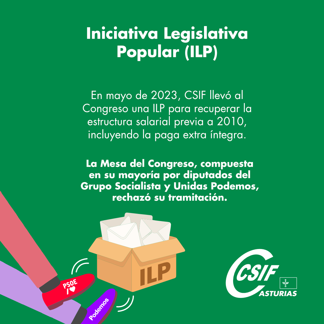 En 2023, CSIF llevó al Congreso una ILP para recuperar las pagas extra íntegras. Aunque fue rechazada, el Tribunal Constitucional ha admitido a trámite el recurso presentado por CSIF, abriendo la puerta a su debate parlamentario. -