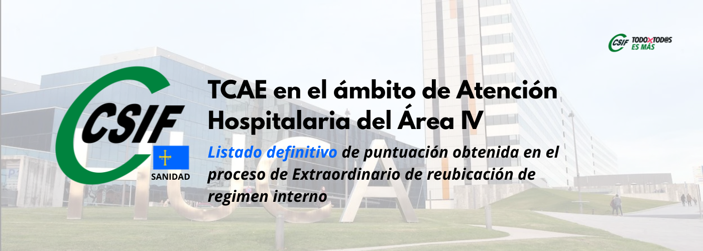TCAE en el ámbito de Atención Hospitalaria del Área IV. - Listado definitivo de puntuación obtenida en el proceso de Extraordinario de reubicación de regimen interno
