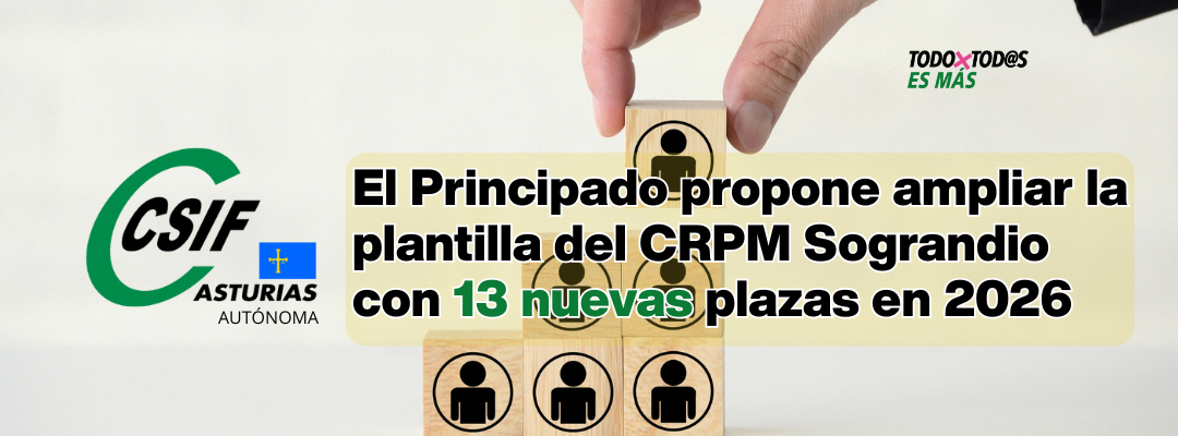 Os informamos de que el Principado de Asturias ha publicado en su portal de transparencia la documentación relativa al Proyecto de Ley de Presupuestos para el año 2026. En el Tomo 8 del proyecto, página 37, se recoge un incremento de plantilla para el CRPM Sograndio que consideramos especialmente relevante. Concretamente, se propone la creación de: