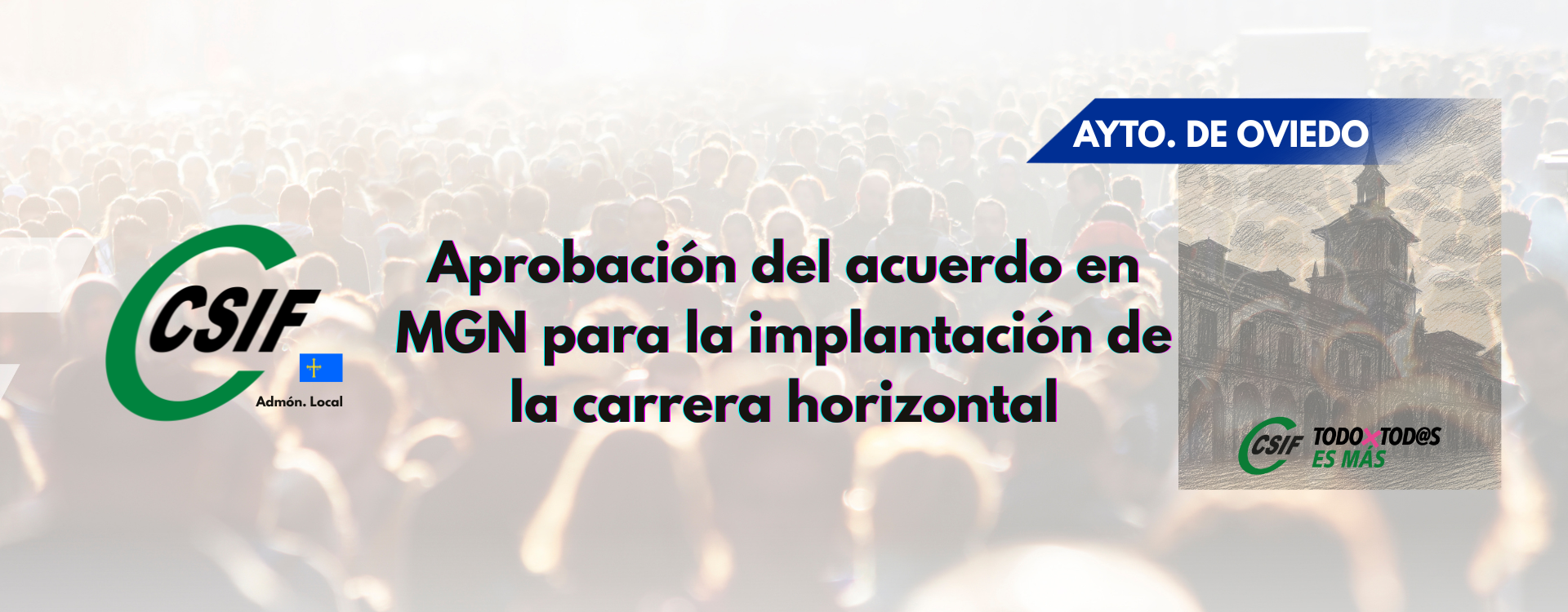 Os informamos que esta misma mañana se celebró la Mesa General de Negociación del Ayuntamiento de Oviedo, con carácter extraordinario y urgente, en la que se ha aprobado la carrera horizontal conforme a la propuesta del Concejal del Gobierno de Interior, que recogía los compromisos que se habían alcanzado previamente en la mesa de trabajo reunida para tal fin a lo largo del presente año y formada por la representación de la Administración y de todas las secciones sindicales con representación en el Ayuntamiento.