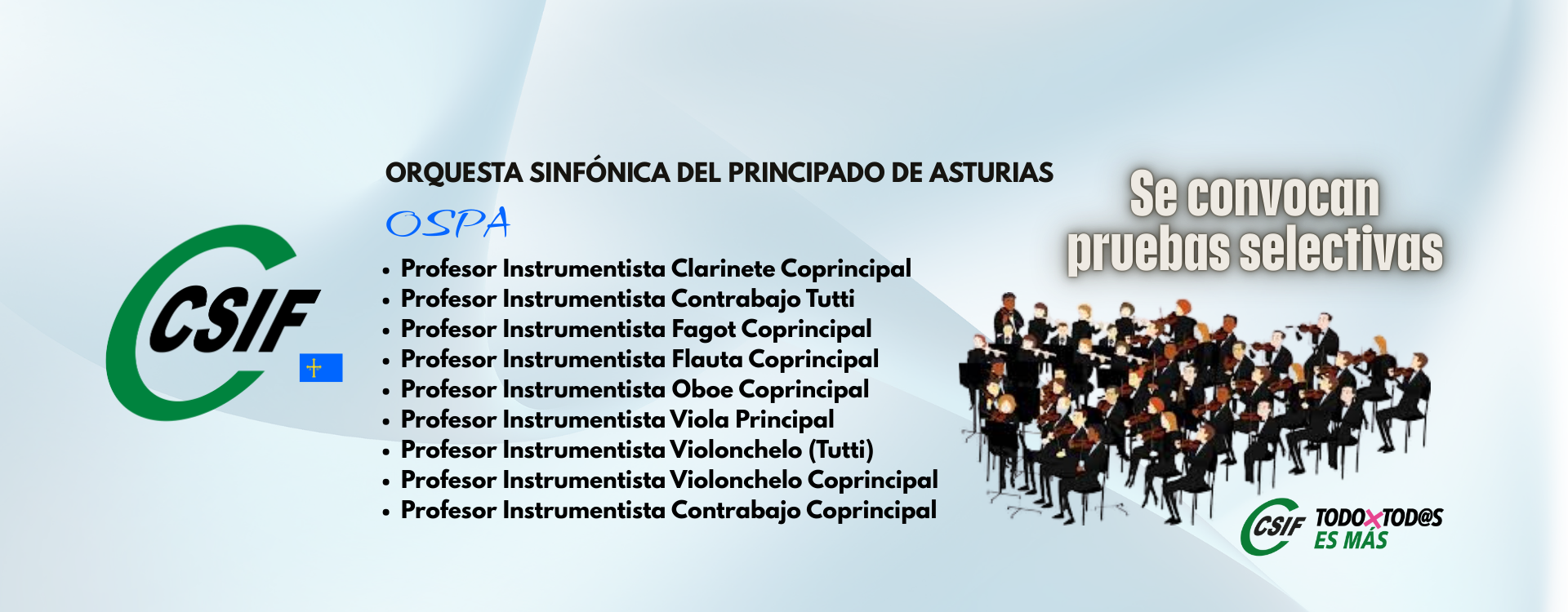 - Resolución de 18 de diciembre de 2025, de la Gerencia de la Orquesta Sinfónica del Principado de Asturias, por la que se convocan pruebas selectivas en turno de promoción interna para la selección de personal Profesor Instrumentista Contrabajo Coprincipal, correspondiente a la OPE de 2024. [Cód. 2025-10680]