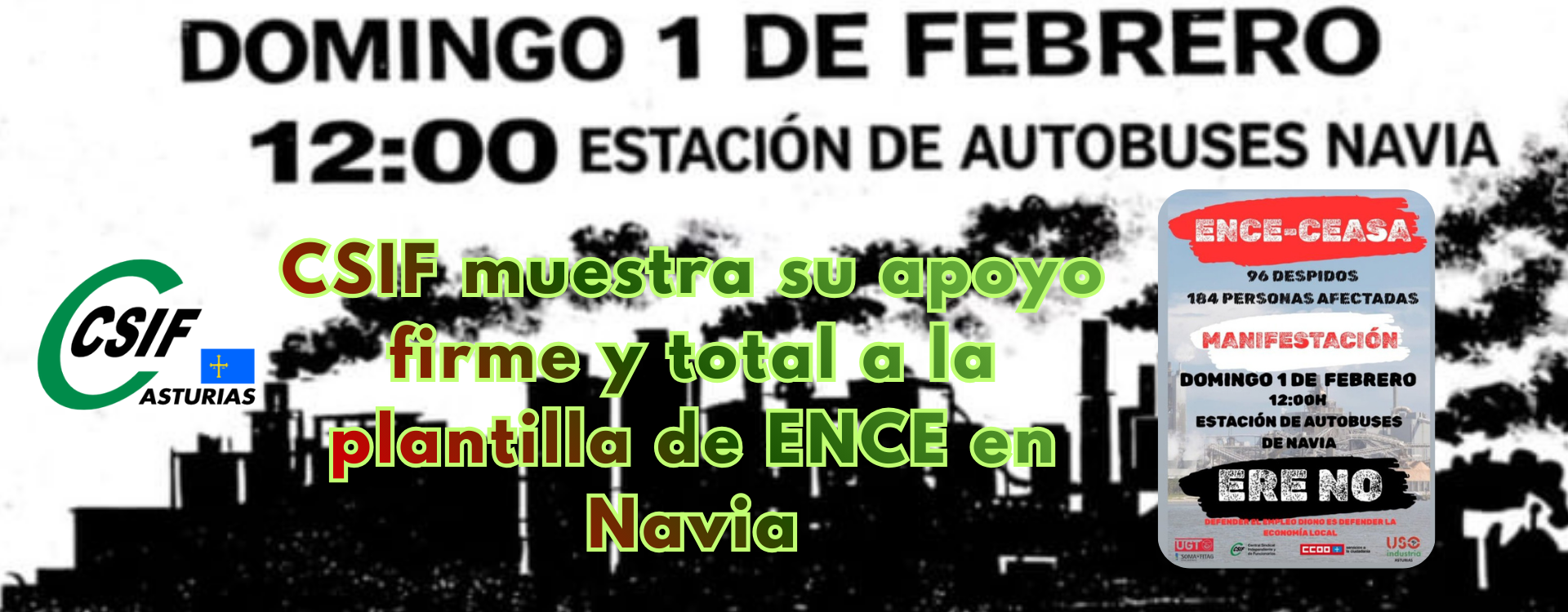 CSIF muestra su apoyo firme y total a la plantilla de ENCE en Navia frente al ERE planteado por la empresa. Un expediente injusto y desproporcionado que amenaza 96 puestos de trabajo y pone en riesgo el futuro de toda una comarca.