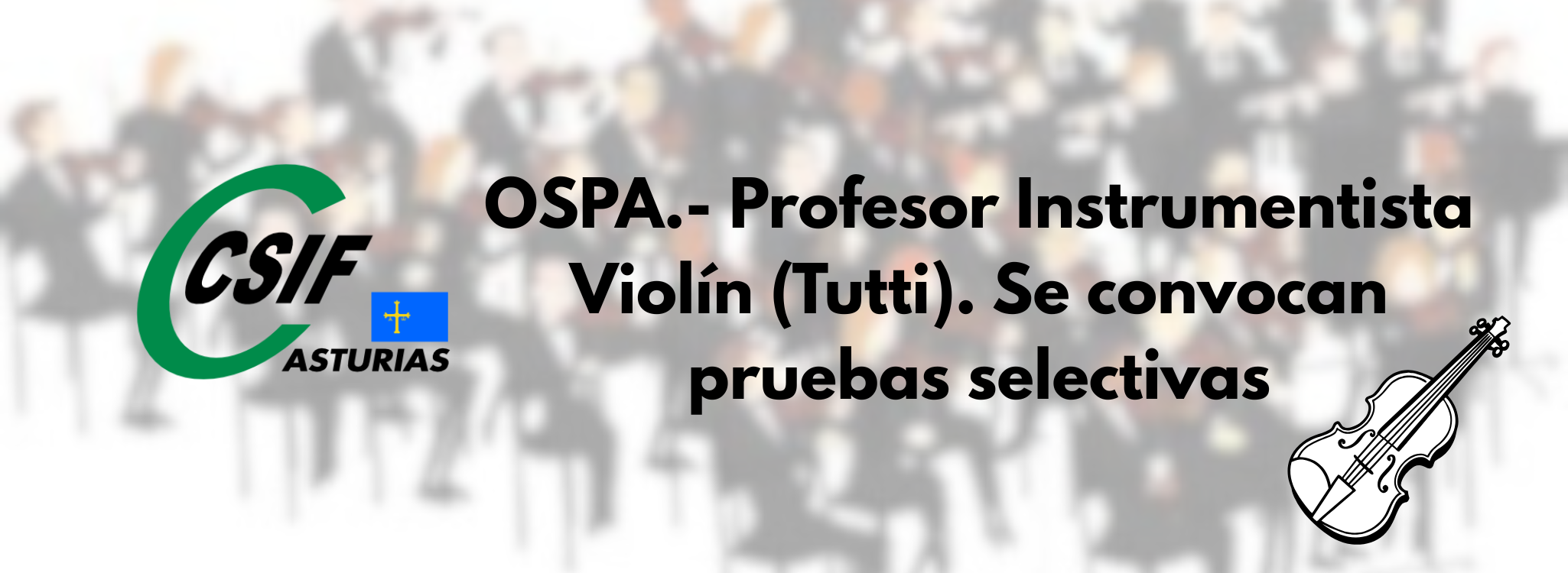 OSPA.- Profesor Instrumentista Violín (Tutti). Se convocan pruebas selectivas