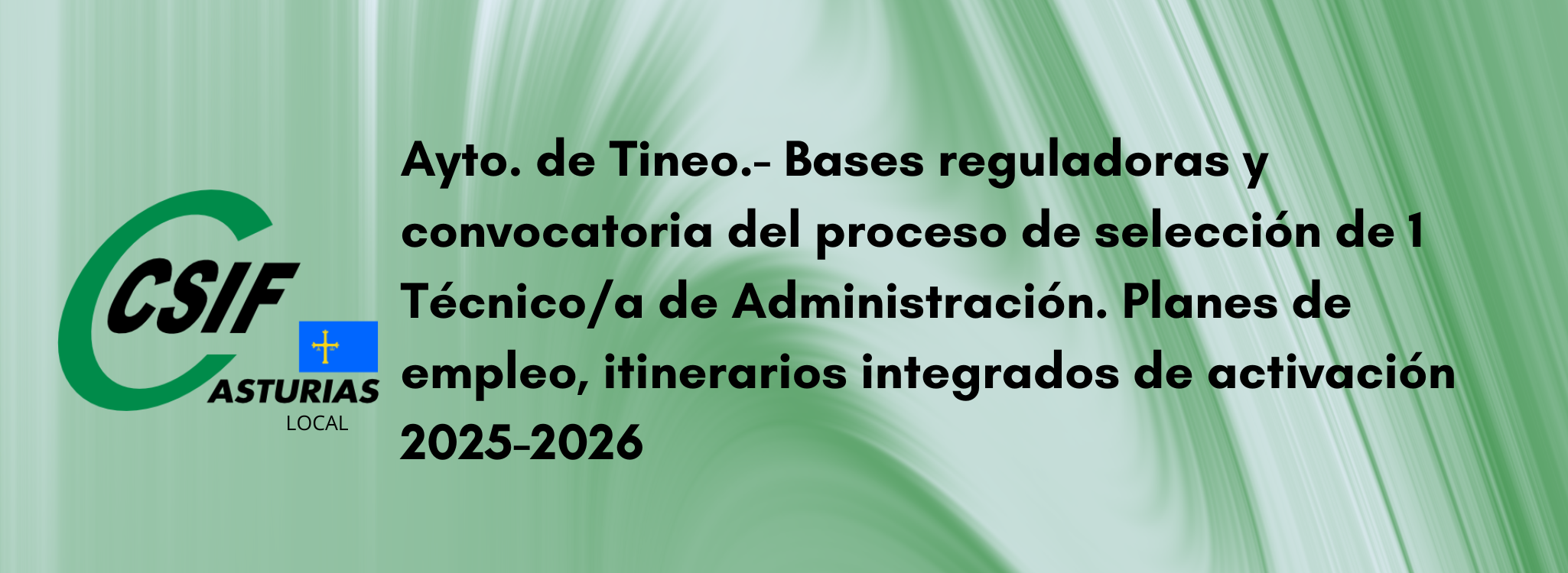 Ayto. de Tineo.- Bases reguladoras y convocatoria del proceso de selección de 1 Técnico/a de Administración. Planes de empleo, itinerarios integrados de activación 2025-2026