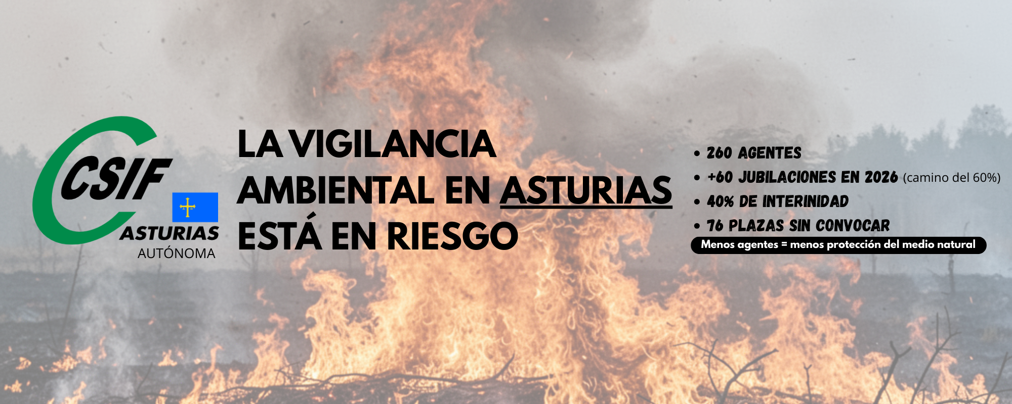 Desde CSIF queremos denunciar la situación en la que se encuentra el colectivo de Agentes del Medio Natural ante la dejadez y falta de previsión de la Administración del Principado de Asturias. En el año 2024, con la Ley 4/2024, de 8 de noviembre, básica de agentes forestales y medioambientales, se estableció el derecho a la jubilación anticipada de los Agentes, así como la imposición de una serie de obligaciones a las Comunidades Autónomas.