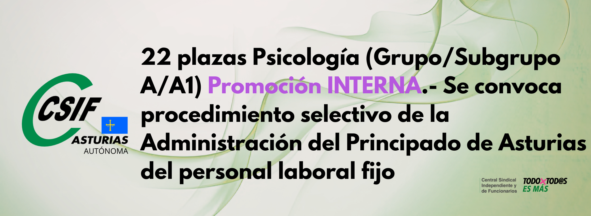 22 plazas Psicología (Grupo/Subgrupo A/A1) Promoción INTERNA .- Se convoca procedimiento selectivo de la Administración del Principado de Asturias del personal laboral fijo