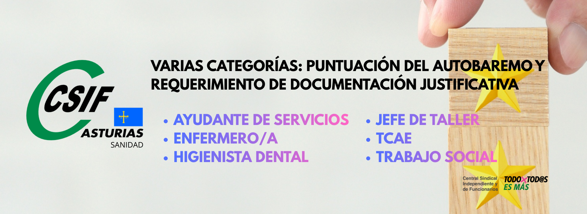 Varias categorías: Puntuación del autobaremo y requerimiento de documentación justificativa