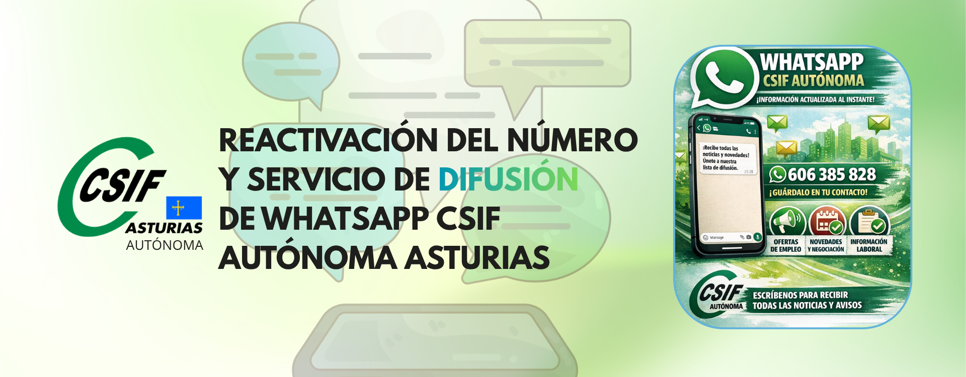 REACTIVACIÓN DEL NÚMERO Y SERVICIO DE DIFUSIÓN DE WHATSAPP CSIF AUTÓNOMA