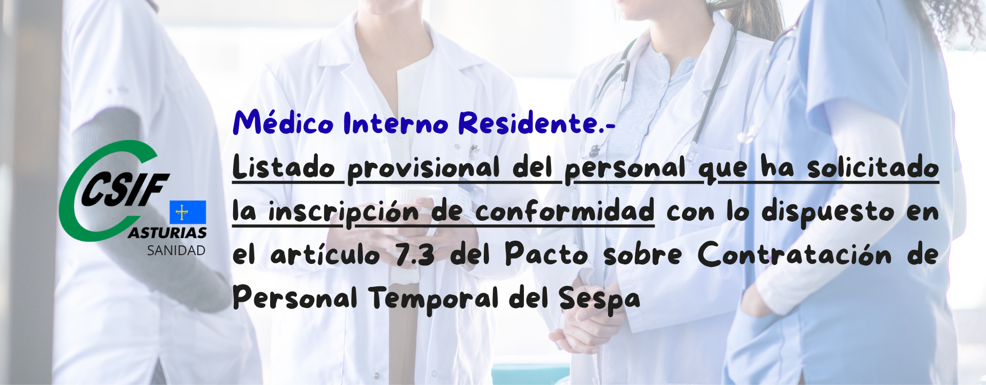Resolución de 29 de abril por la que se hace público el listado provisional del personal Médico Interno Residente que ha solicitado la inscripción de conformidad con lo dispuesto en el artículo 7.3 del Pacto sobre Contratación de Personal Temporal del Sespa