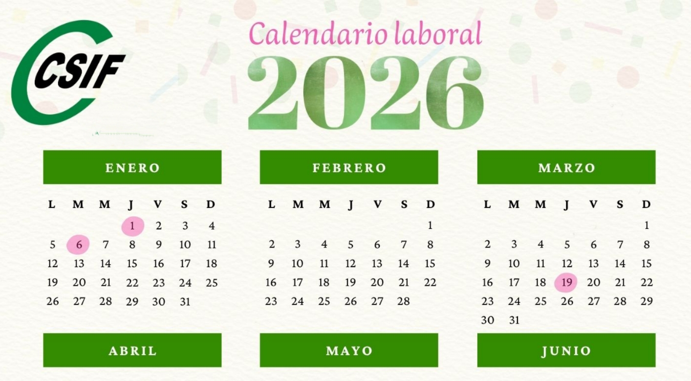 CSIF JUSTICIA INFORMA: publicada en el BOE la Resolución de 17 de octubre de 2025, de la Dirección General de Trabajo, por la que se publica la relación de fiestas laborales para el año 2026.