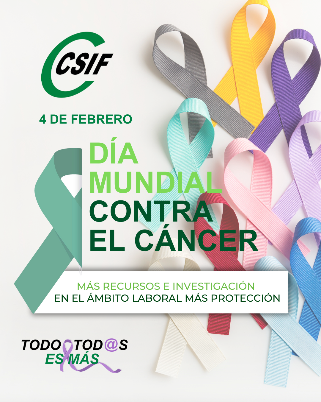 El Día Mundial contra el Cáncer no debe ser solo una jornada de concienciación, sino una oportunidad real para impulsar políticas eficaces que salven vidas. Desde CSIF renovamos nuestro compromiso con las personas afectadas por el cáncer y sus familias, con la investigación científica, con la sanidad pública y con la justicia laboral.