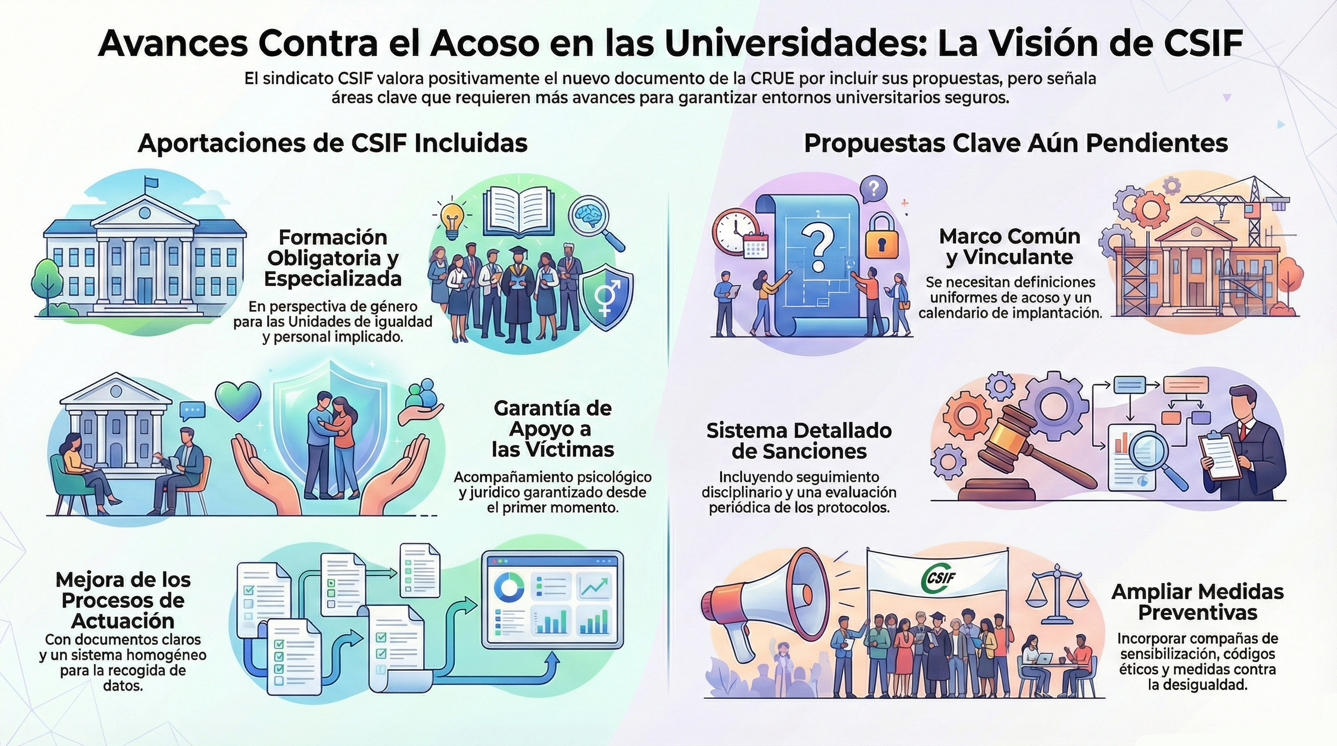 Desde CSIF seguimos comprometiéndonos a colaborar con la CRUE y con todas las universidades españolas para mejorar los protocolos y garantizar entornos libres de acoso.