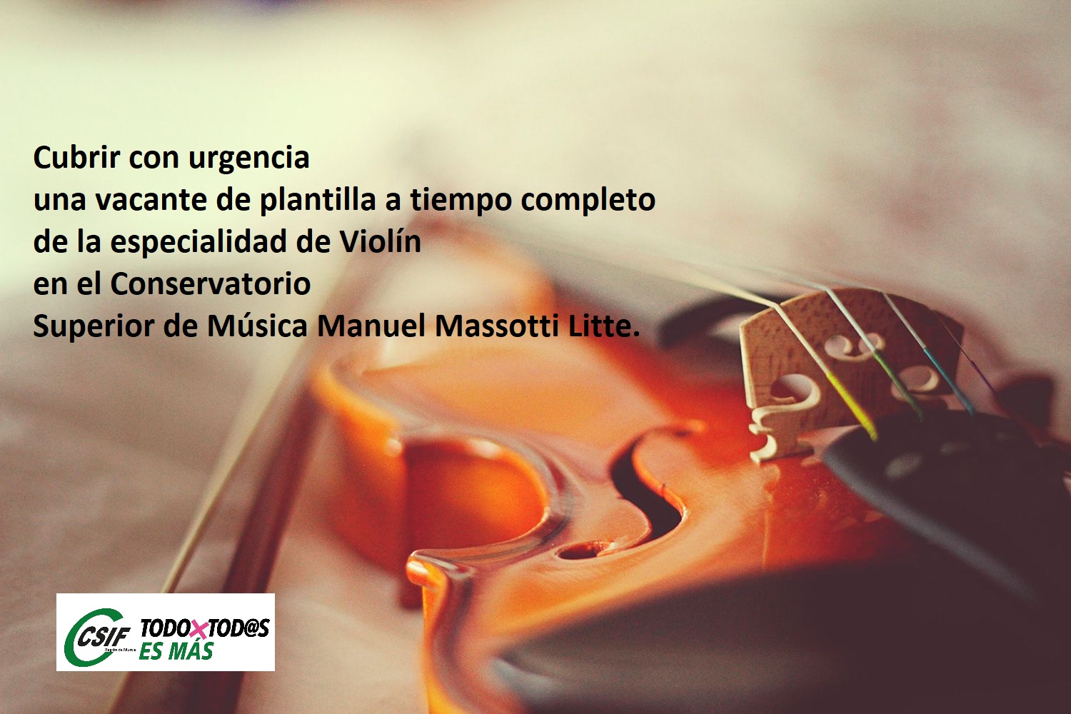 Con objeto de atender las necesidades educativas y cubrir con urgencia una vacante de plantilla a tiempo completo de la especialidad de Violín del Cuerpo de Catedráticos de Música y Artes Escénicas en el Conservatorio Superior de Música Manuel Massotti Littel, y para atender posibles sustituciones de dicha especialidad que se produzcan durante el curso 2025-2026,