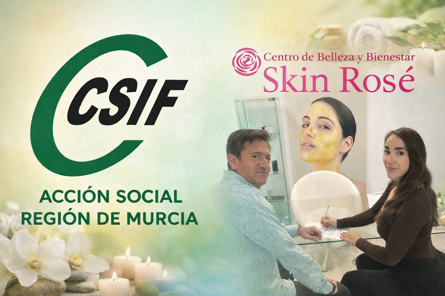 CSIF a través de su área de Acción Social en la Región de Murcia, ha firmado un nuevo convenio de colaboración con Skin Rosé, un exclusivo spa de salud y bienestar ubicado en Calle Sgto. Ángel Tornel, 2 (30009 Murcia), con el objetivo de seguir ampliando las ventajas y beneficios para sus afiliados.