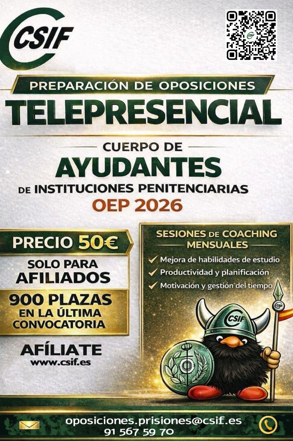 oposiciones.prisiones@csif.es  / 915 67 59 70