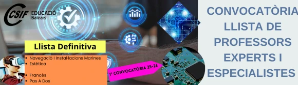 1ª Convocatòria de Professors Experts i Especialistes 25-26. Llista Definitiva.