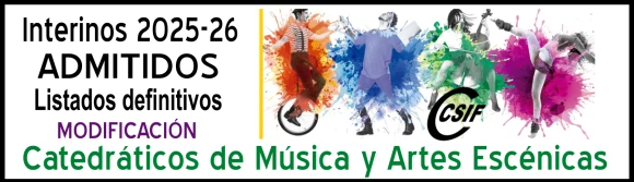 Interinos. Curso 2025 /2026. Cuerpo de catedráticos de música y artes escénicas. Modificación de los listados definitivos de admitidos.