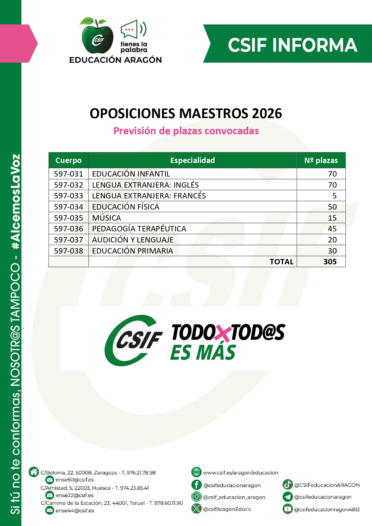 CSIF manifiesta su más profunda preocupación por la oferta de empleo público que hoy se presenta. Consideramos que la misma es claramente insuficiente para hacer frente a las necesidades reales del sistema educativo aragonés: no aborda de manera seria la reducción de la interinidad, no permite estabilizar las plantillas ni garantizar la calidad educativa que nuestra comunidad necesita.