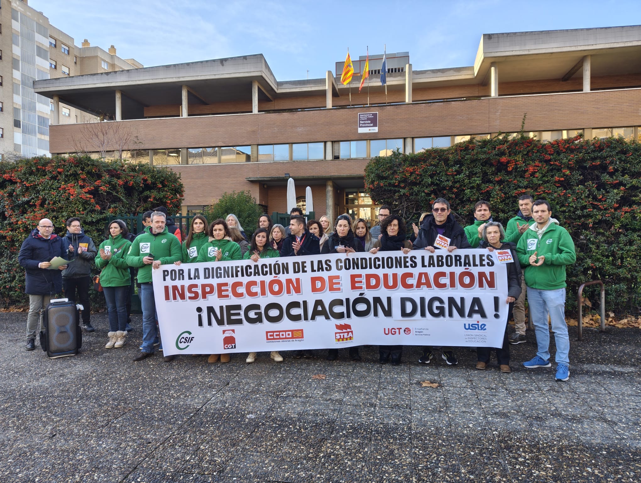 CSIF Educación Aragón ha vuelto a participar esta mañana del viernes 5 de diciembre en la concentración celebrada ante el Servicio Provincial de Zaragoza para mostrar su apoyo a la Inspección Educativa. Durante el acto se leyó el manifiesto del colectivo, en el que se reclama una negociación efectiva con la Administración, el fin de la aplicación arbitraria de normativas que menoscaba la seguridad jurídica, y el refuerzo urgente de recursos humanos y materiales —tanto en la propia Inspección como en el personal administrativo— para garantizar una atención adecuada a centros y ciudadanía. El texto subraya, además, la necesidad de aplicar las medidas recomendadas en la evaluación de riesgos psicosociales del curso 2023/24 y de reconocer institucionalmente la labor inspectora y su independencia profesional. CSIF se suma a estas demandas y seguirá trasladándolas por las vías formales, al tiempo que acompaña al colectivo en defensa de un servicio público educativo de calidad en Aragón.