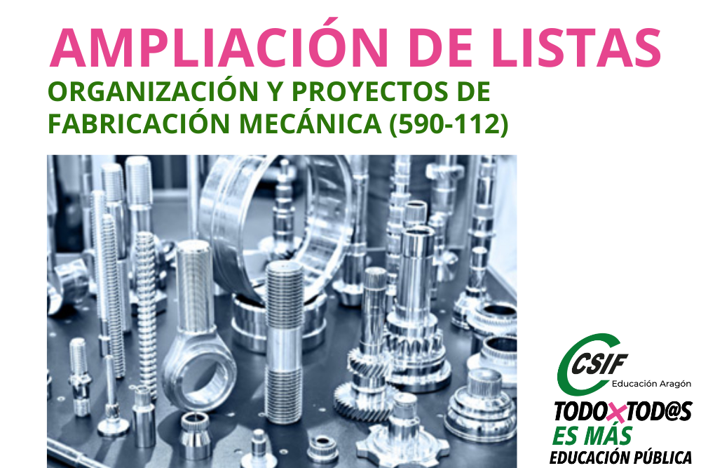 AMPLIACIÓN DE LISTAS. ORGANIZACIÓN Y PROYECTOS DE FABRICACIÓN MECÁNICA (590-112)