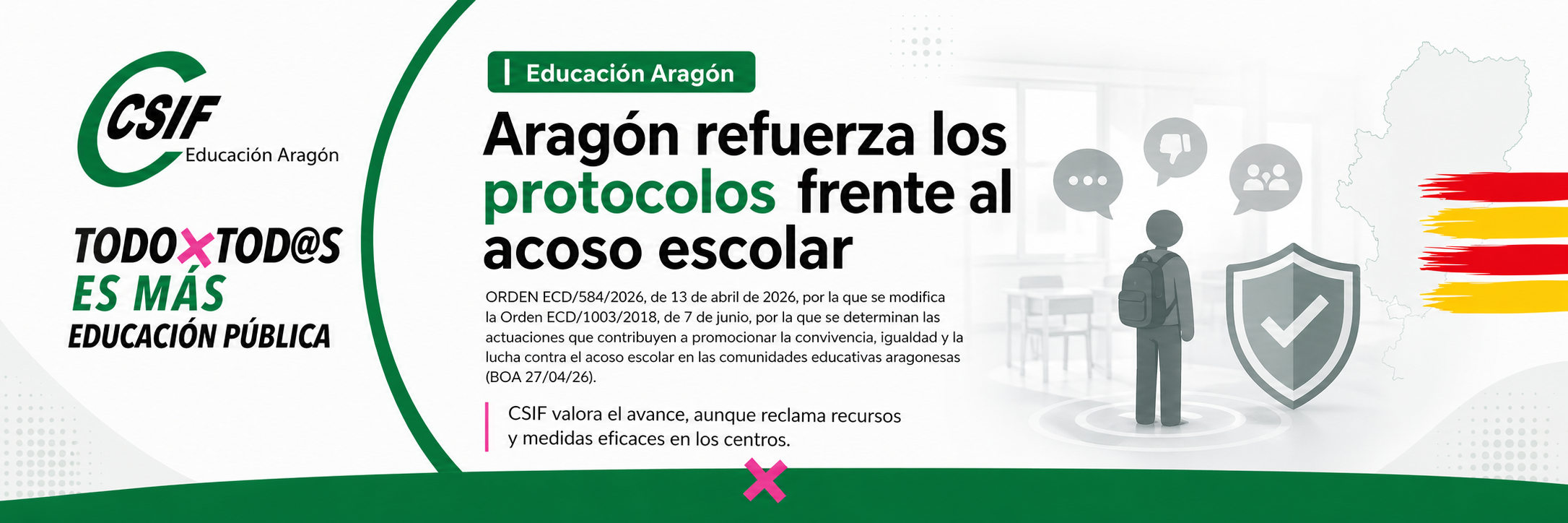 Desde CSIF Educación Aragón valoramos positivamente esta publicación, ya que supone un avance necesario en la protección del alumnado y en la mejora de la convivencia escolar. No obstante, consideramos que esta regulación llega tarde, después de que la comunidad educativa lleve tiempo reclamando procedimientos más claros, ágiles y garantistas ante situaciones de acoso y violencia en el ámbito educativo.