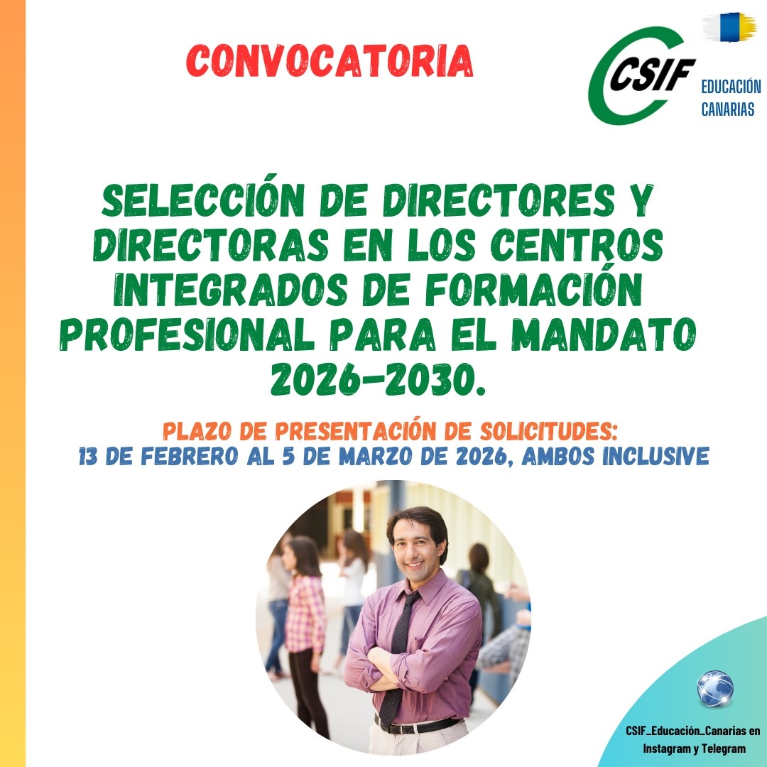 CONVOCATORIA: SELECCIÓN DE DIRECTORES Y DIRECTORAS EN LOS CENTROS INTEGRADOS DE FORMACIÓN PROFESIONAL (CIFP) PARA EL MANDATO 2026-2030