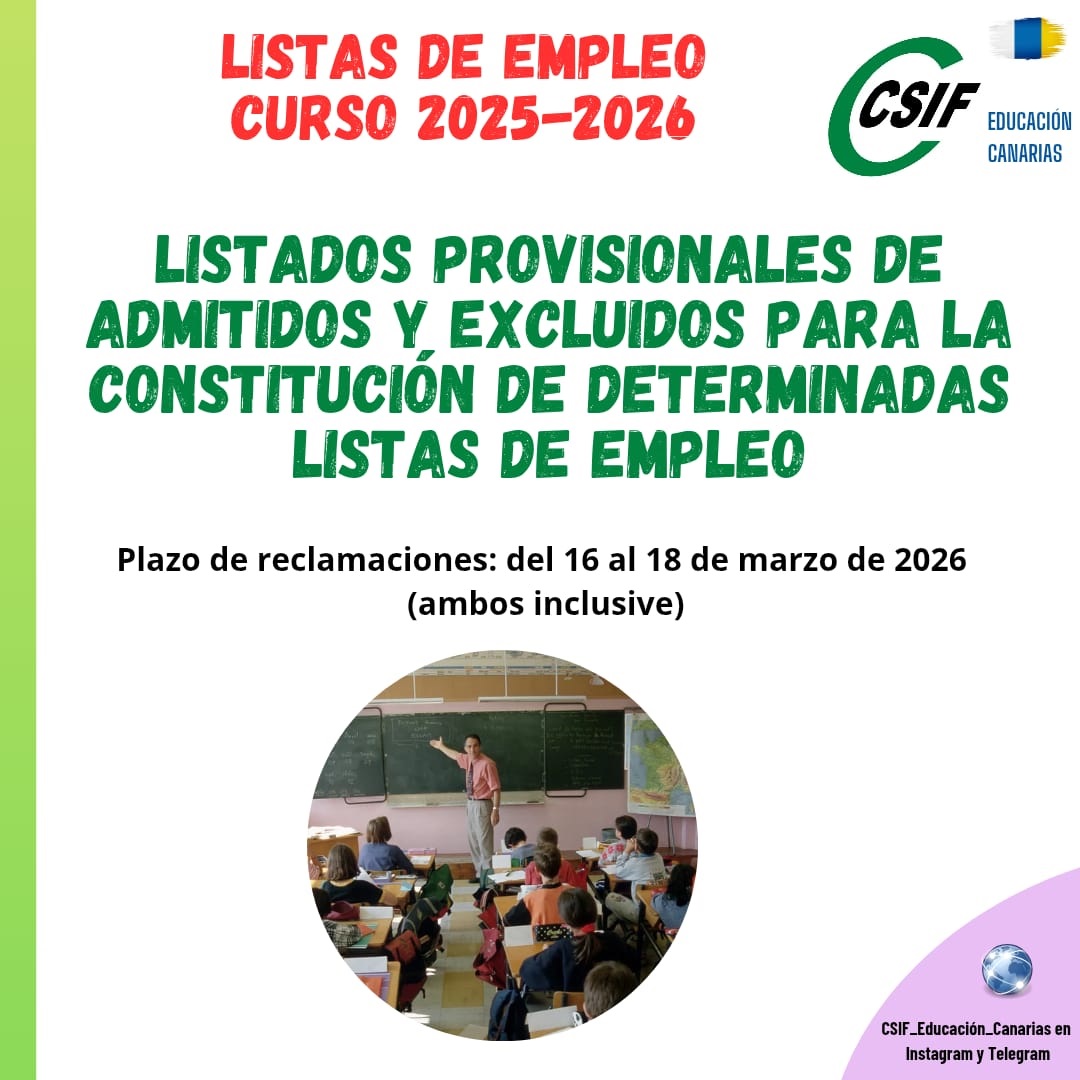 CONSTITUCIÓN DE LISTAS 2026. PUBLICADOS LOS LISTADOS PROVISIONALES DE ADMITIDOS Y EXCLUIDOS EN EL PROCEDIMIENTO EXTRAORDINARIO PARA LA CONSTITUCIÓN DE DETERMINADAS LISTAS DE EMPLEO