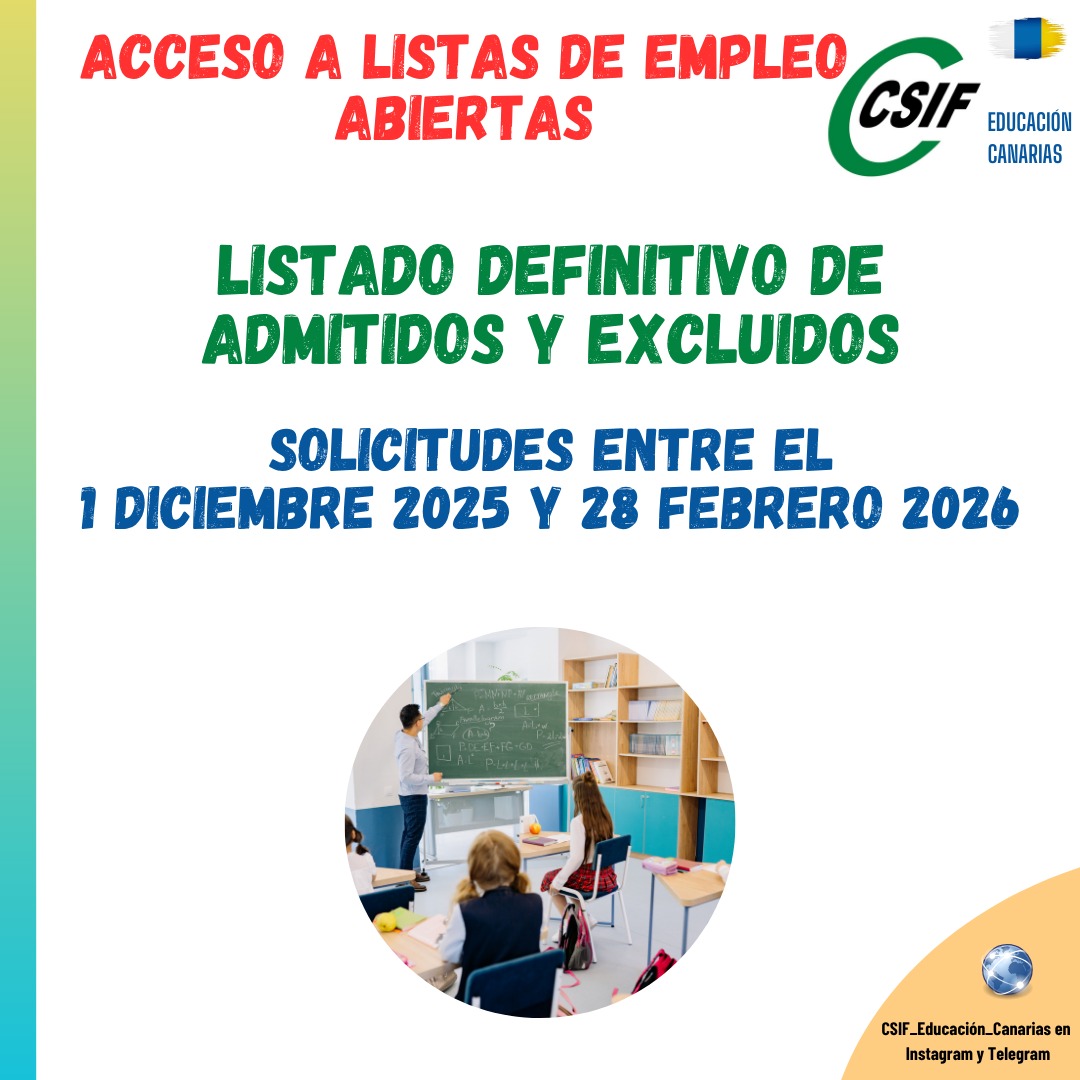 PUBLICADOS LOS LISTADOS DEFINITIVOS DE ADMITIDOS Y EXCLUIDOS. SOLICITUDES ENTRE EL 1 DE DICIEMBRE 2025 Y 28 DE FEBRERO DE 2026