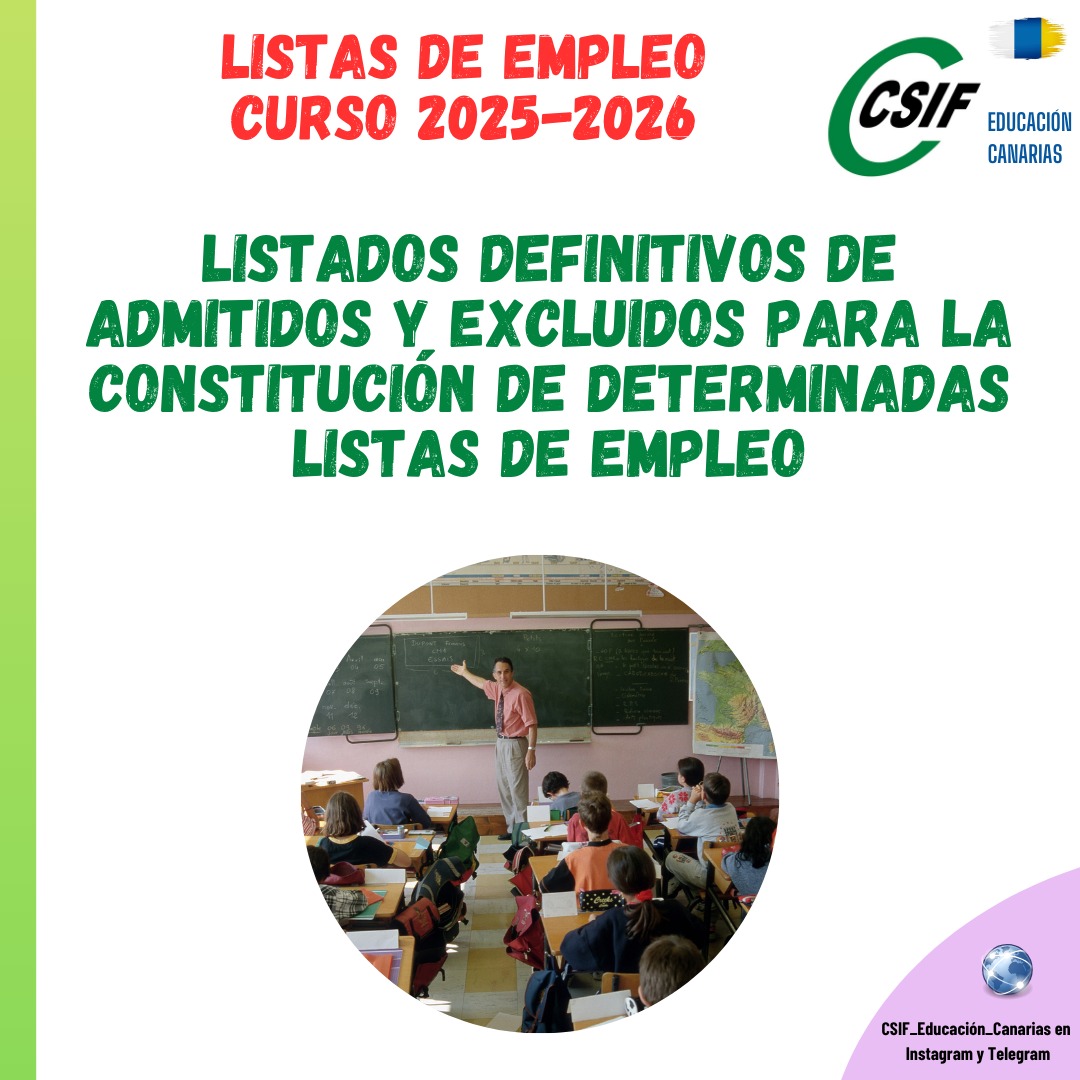PUBLICADOS LOS LISTADOS DEFINITIVOS DE ADMITIDOS Y EXCLUIDOS EN EL PROCEDIMIENTO EXTRAORDINARIO PARA LA CONSTITUCIÓN DE DETERMINADAS LISTAS DE EMPLEO