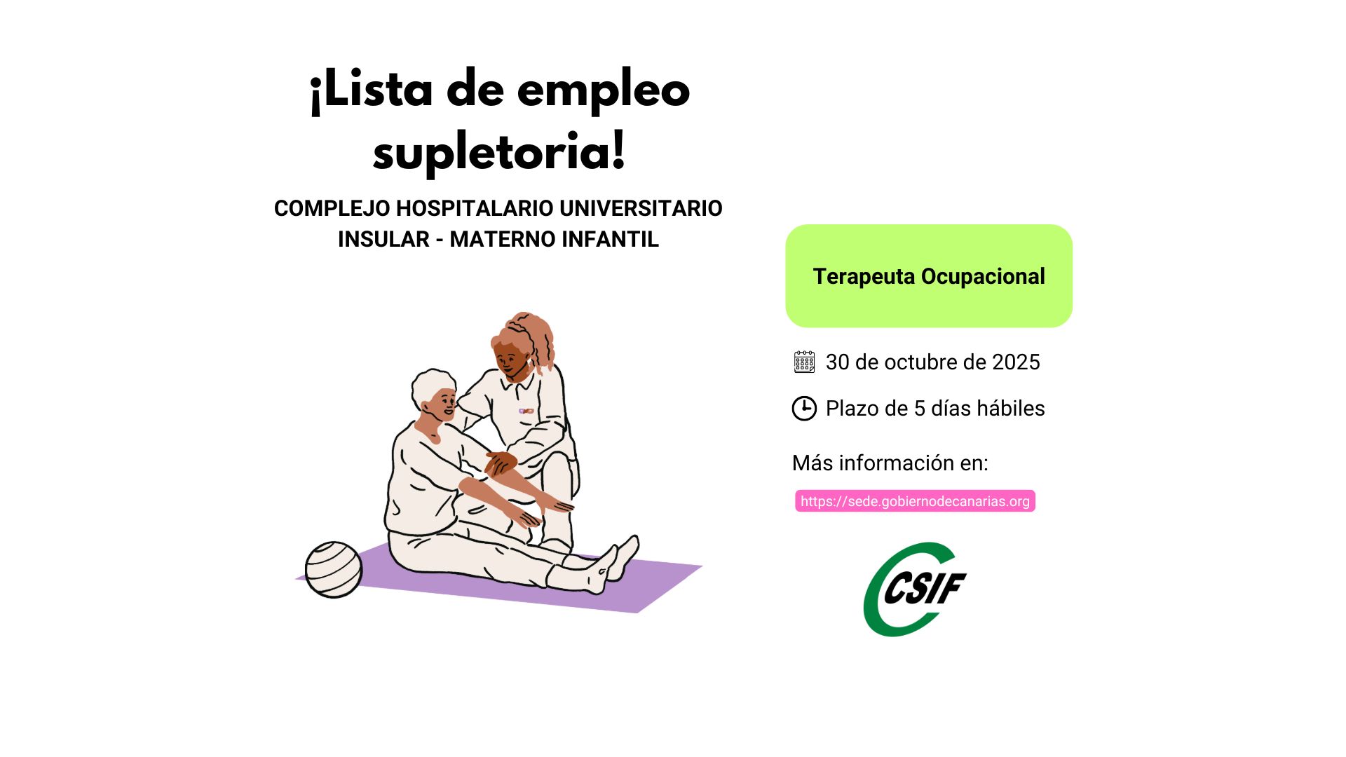 Convocatoria de proceso selectivo para la constitución de LISTA DE EMPLEO SUPLETORIA (Complejo Hospitalario Universitario Insular - Materno Infantil)