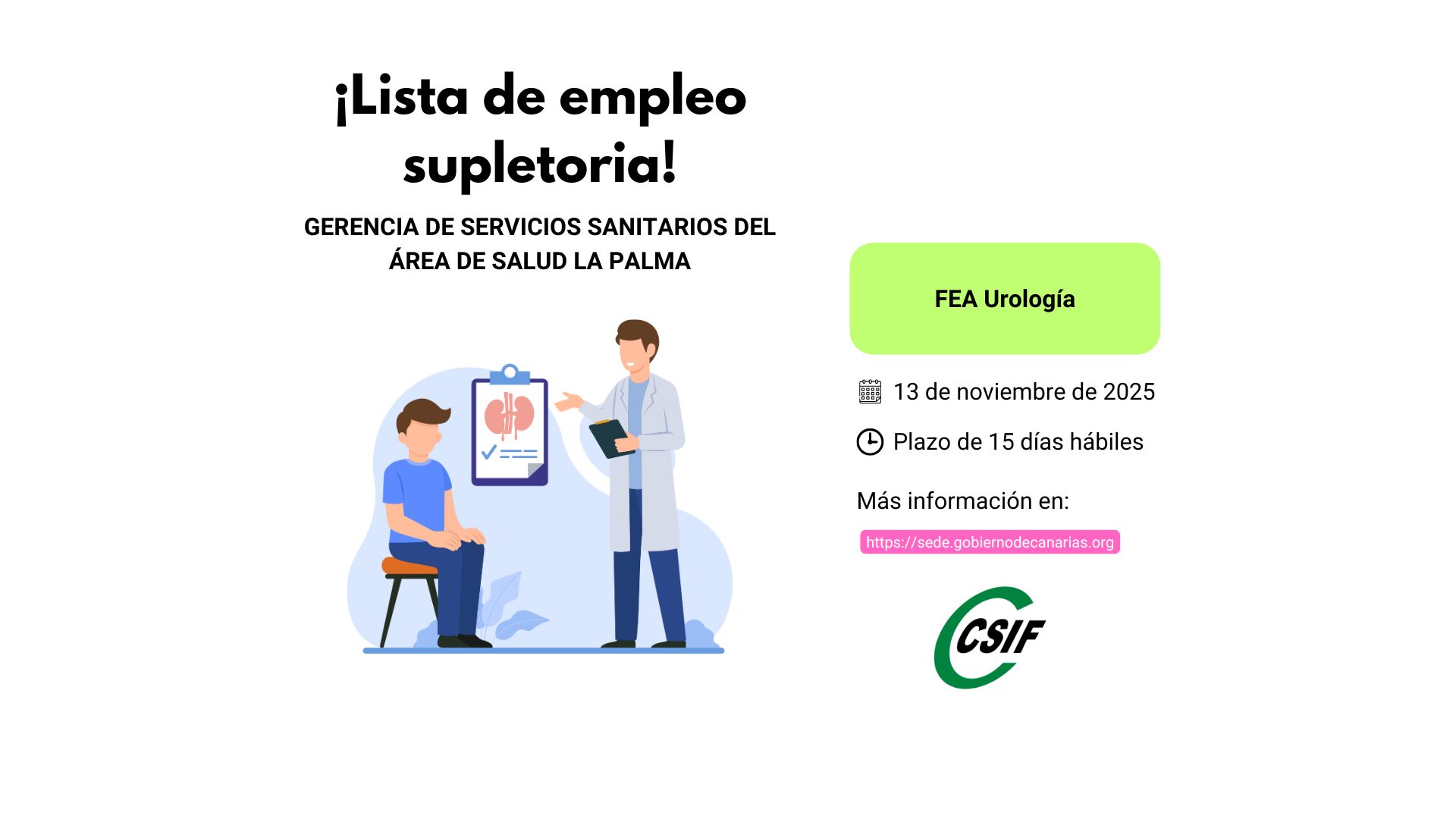 Convocatoria de proceso selectivo para la constitución de LISTA DE EMPLEO SUPLETORIA (Gerencia de Servicios Sanitarios del Área de Salud de La Palma)