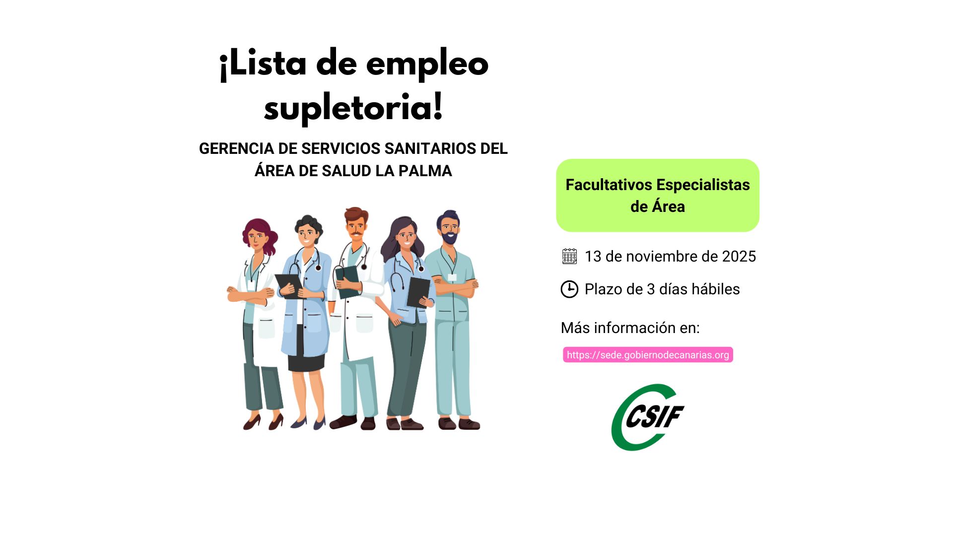 Convocatoria de proceso selectivo para la constitución de LISTA DE EMPLEO SUPLETORIA (Gerencia de Servicios Sanitarios del Área de Salud de La Palma)
