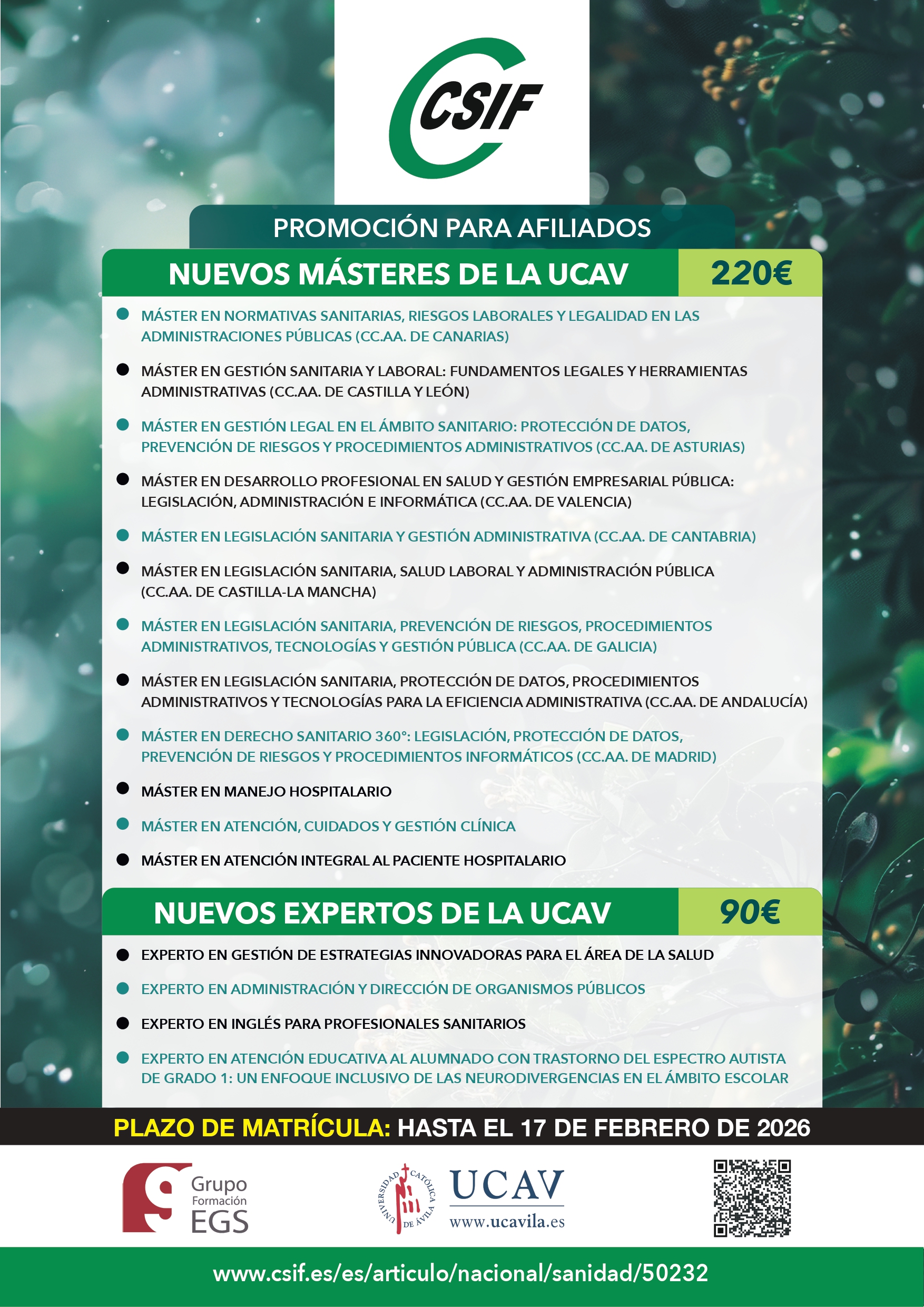 NUEVOS MÁSTERES DE LA UCAV 220€